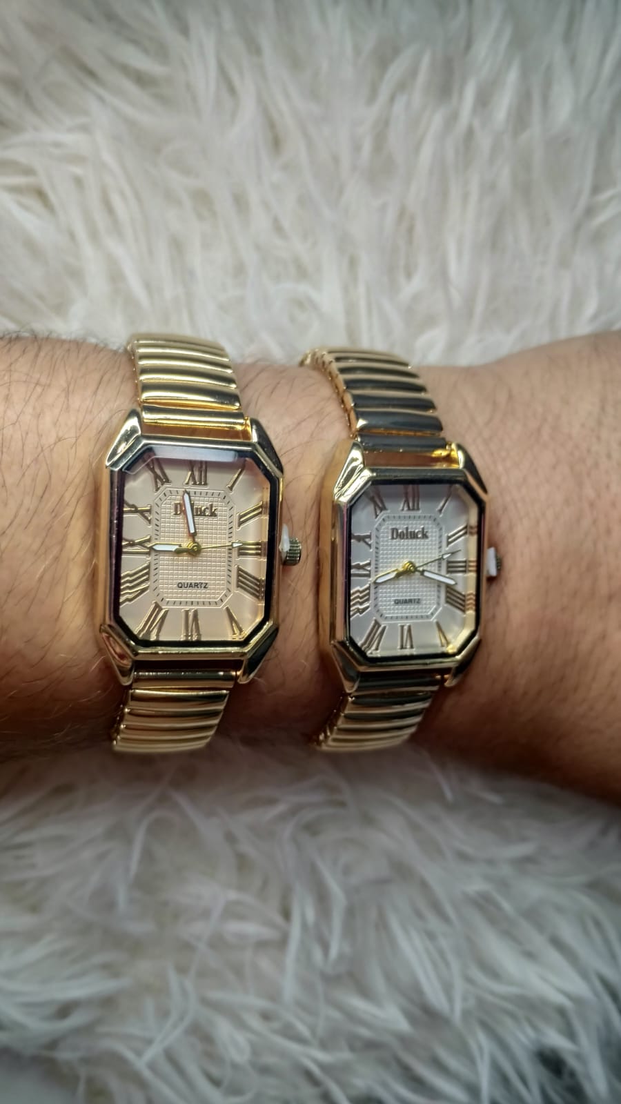 Relógio feminino com designe moderno e bracelete sem fecho, padrão elástico.